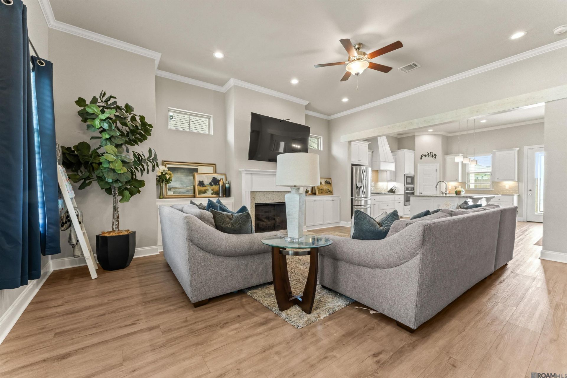 Riverton Subdivision in Darrow is waiting for you. Built in 2023, this beautifully designed one-story home offers 2,116 square feet of living space with 4 bedrooms and 2 full baths and many extras. Whole-house generator adds comfort and peace of mind. 1 year old generator with 24KW and 10 yr transferrable warranty. Step from the inviting front porch into a spacious living room featuring a ventless gas fireplace with a granite surround, flanked by custom cabinetry and shelving. An exposed cypress beam defines the space while maintaining an open flow into the kitchen and dining areas. The kitchen is a true highlight, showcasing custom painted cabinetry with under cabinet lighting, a large center island with sink and three pendant lights, and a stainless GE appliance package including a gas cooktop, single wall oven, and built-in microwave. Finishes include 3 cm Moonlite granite countertops, a 3x12 Craft Gloss tile backsplash, and a walk-in pantry. The spacious primary suite features dual walk-in closets and a spa like en suite bath with double vanities, soaking tub, separate shower, added cabinetry and shelving in bathroom area and a private water closet. Additional conveniences large laundry room with direct access from the primary suite and a well-appointed mudroom off the garage with closet space, built-in cabinetry upper , lower cabinet with granite countertop and over head hanging space. Outdoor amenities include an extended patio, fully fenced backyard, and professional landscaping with full sod. Subdivision has its own private lake. Not a Flood Zone. Approved for Rural Development Loan.
