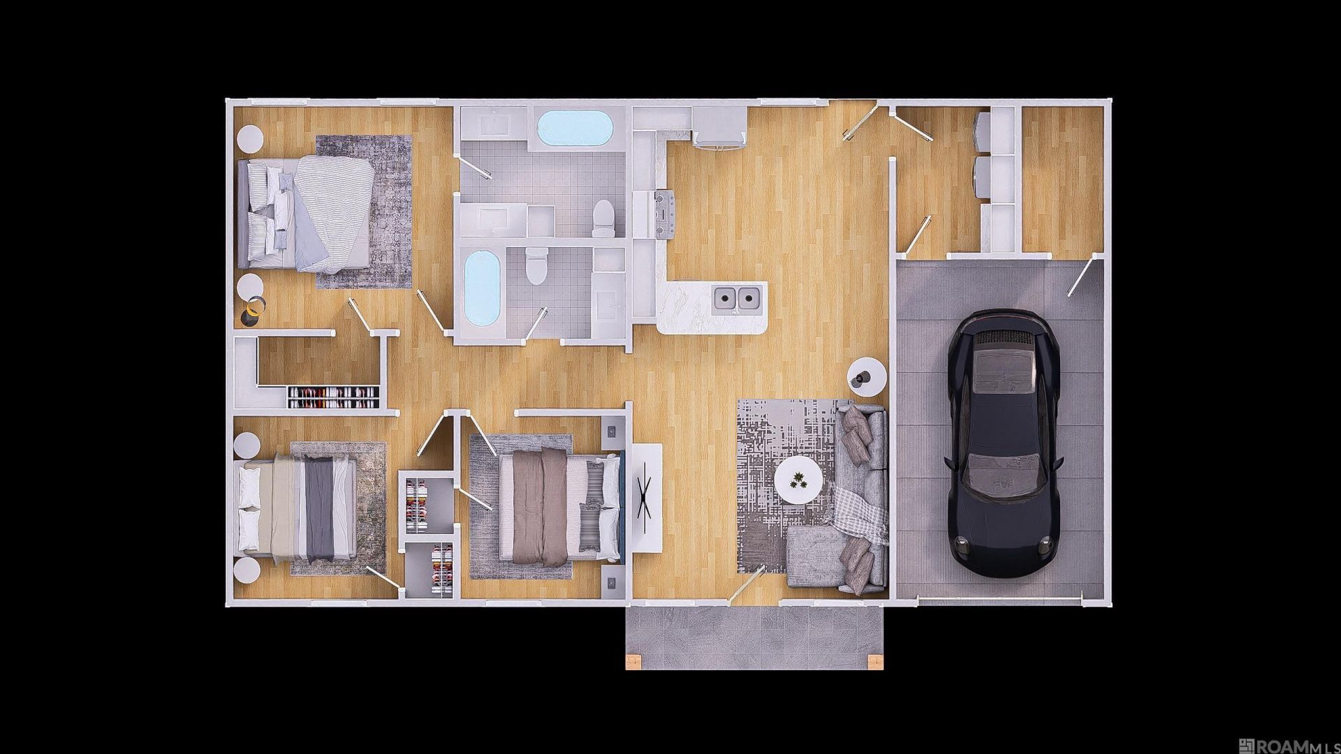 Beautiful new construction home estimated for completion on May 29th! This thoughtfully designed 3-bedroom, 2-bath home offers modern finishes and an open layout. Step inside to find no carpet and durable laminate wood flooring throughout. The spacious living room features impressive 10-foot ceilings, while the rest of the home offers 9-foot ceilings. The kitchen is sure to impress with granite countertops, stainless steel appliances, a refrigerator included as a bonus, under-mounted sink and stylish pendant lighting over the peninsula. Both bathrooms feature granite countertops, framed mirrors and tub/shower combos with stunning 12x24 ceramic tile surrounds extending all the way to the ceiling. The primary suite offers a walk-in closet and an en-suite bath with double vanities for added comfort and convenience. Additional highlights include double-pane windows, ceiling fans in all bedrooms and living room, a welcoming front porch with beautiful cypress beams, garage parking, and a grand 8-foot front door. Don't miss your opportunity to own this beautiful new home with quality finishes throughout! Builder Incentives: $5,300 towards closing cost and stainless steel refrigerator.