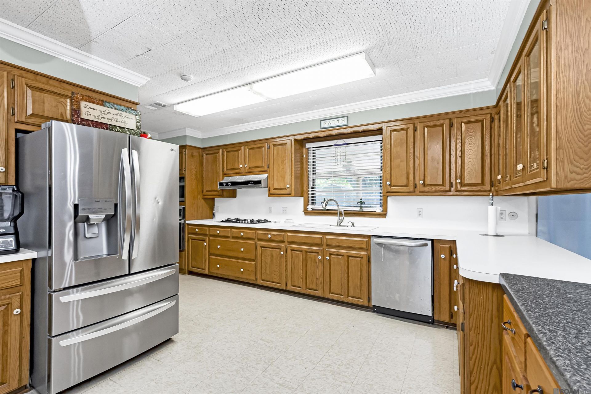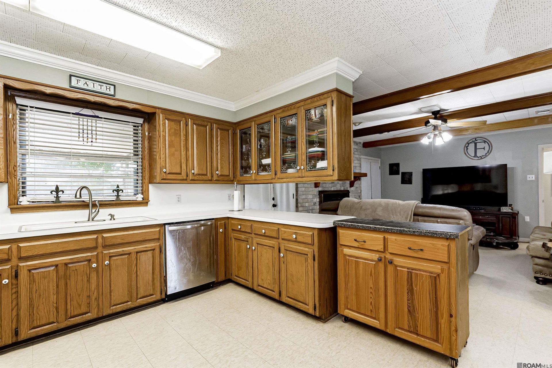 Character, space, and versatility all in one! Welcome to 58515 Delacroix Ave in Plaquemine, a 3 bedroom, 2 bath home packed with features buyers love. The spacious living room is the heart of the home, showcasing beamed ceilings and a large fireplace that creates a warm, inviting atmosphere for relaxing or entertaining. The layout offers a comfortable flow with plenty of natural light throughout. Enjoy no carpet, making for easy maintenance and a clean, modern feel. The kitchen provides ample cabinet space, a deep pantry, and plenty of counter space. Just off the living room, a standout feature of the home, is the bonus mancave/flex space with its own window unit. Ideal for a home office, game room, media room, hobbies, or private retreat. Step outside to your patio and backyard with room to relax, entertain, or customize to fit your style.